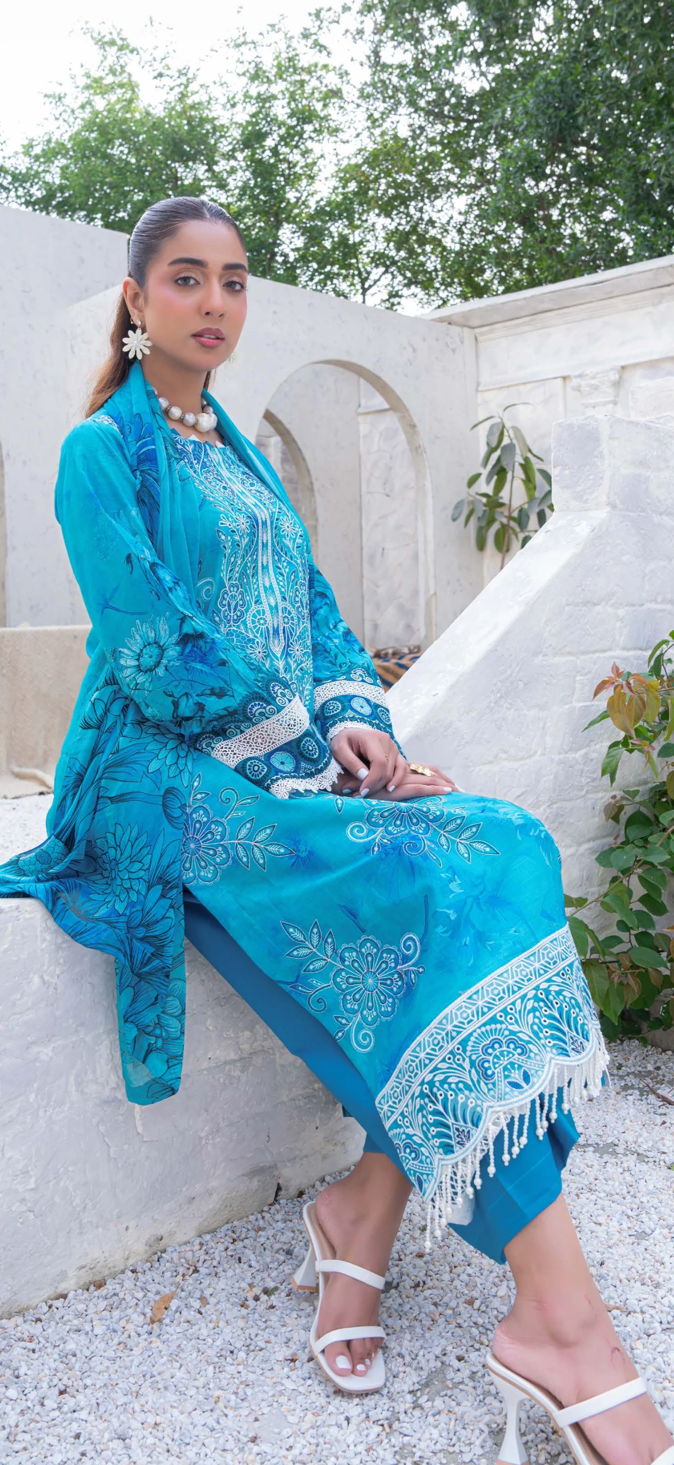 Exclusive Embroidered Digital Print Lawn Slub Shirt with Luxury Crinkle Digital Print Dupatta and Comfort of Plain Trouser