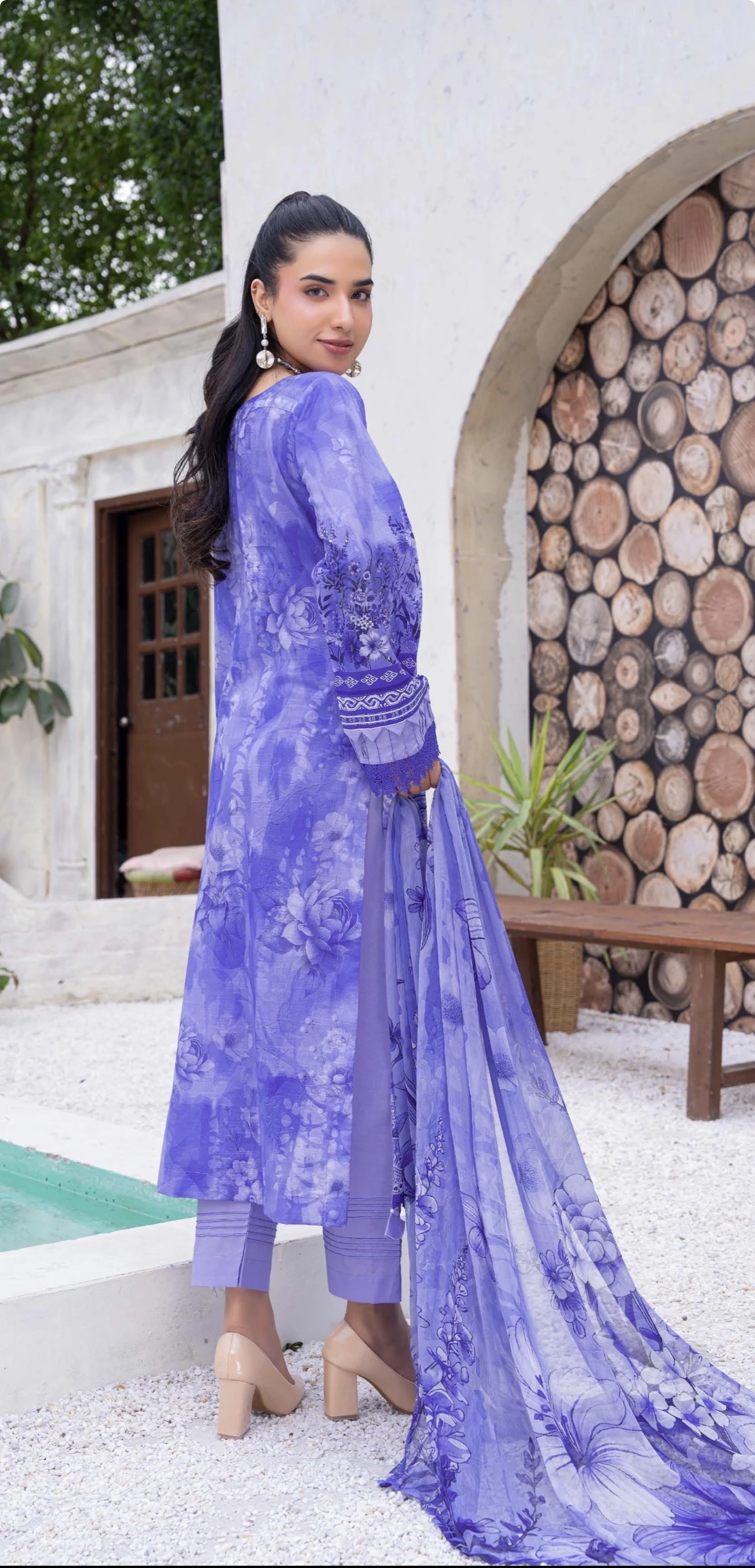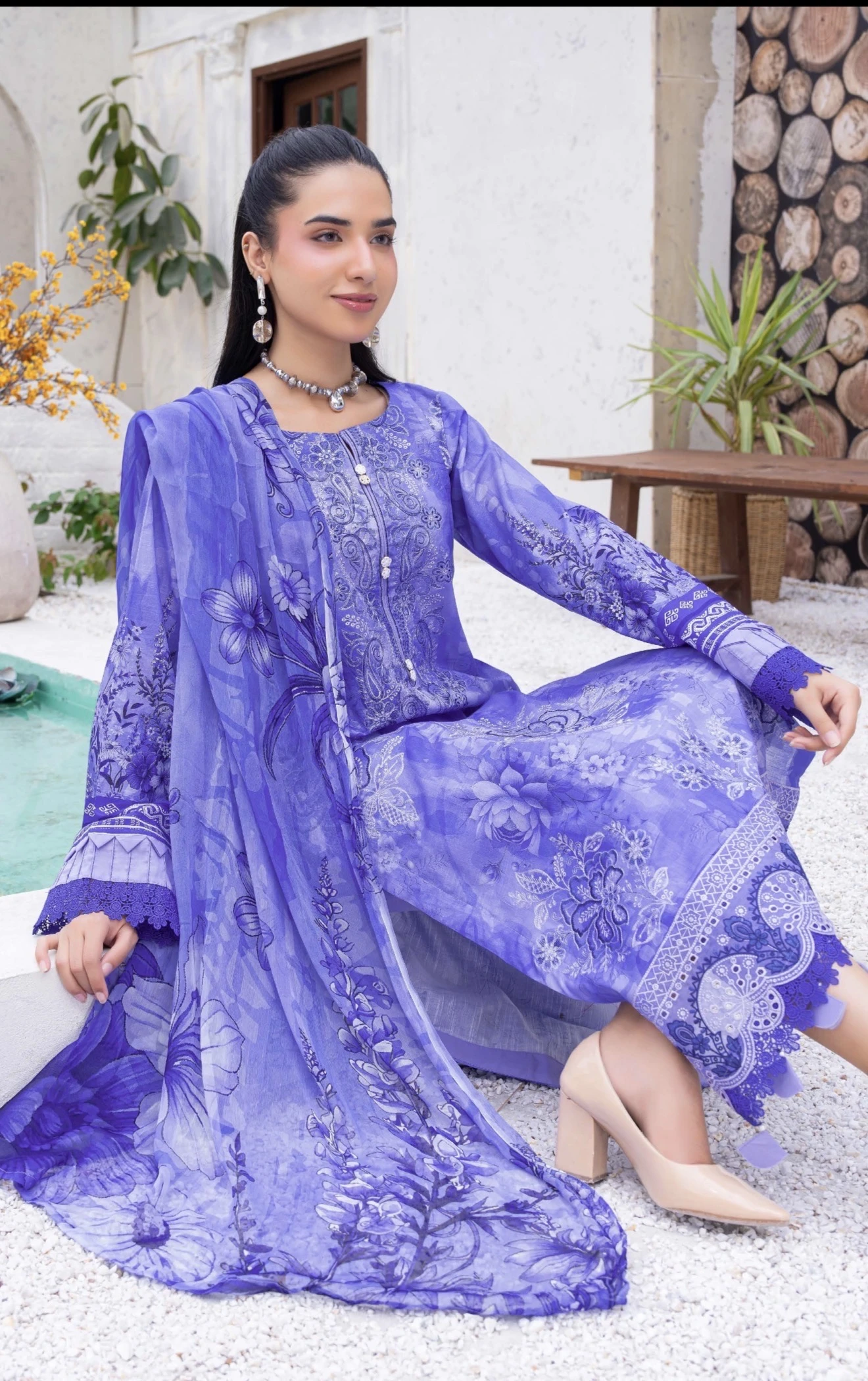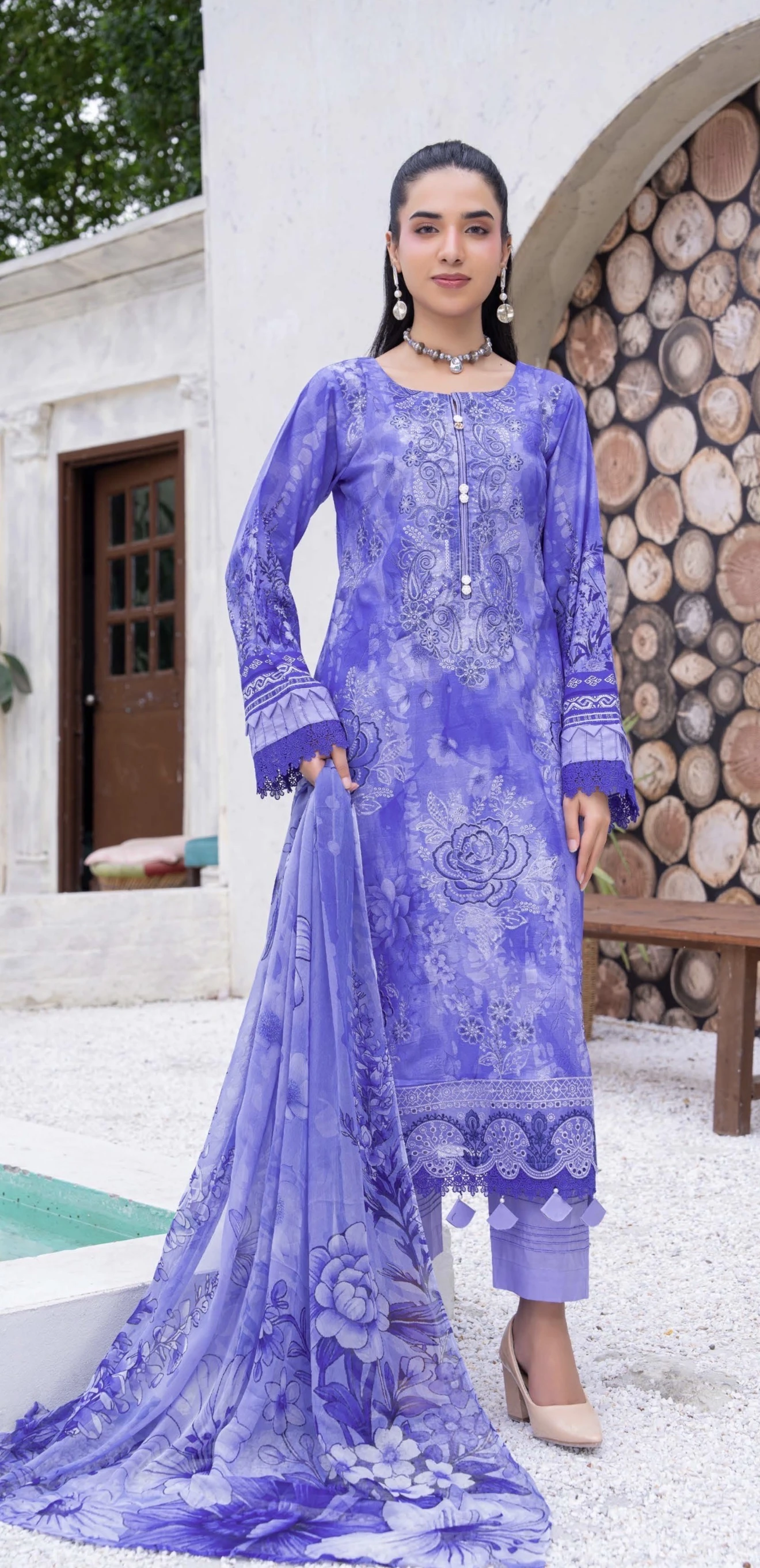 Exclusive Embroidered Digital Print Lawn Slub Shirt with Luxury Crinkle Digital Print Dupatta and Comfort of Plain Trouser