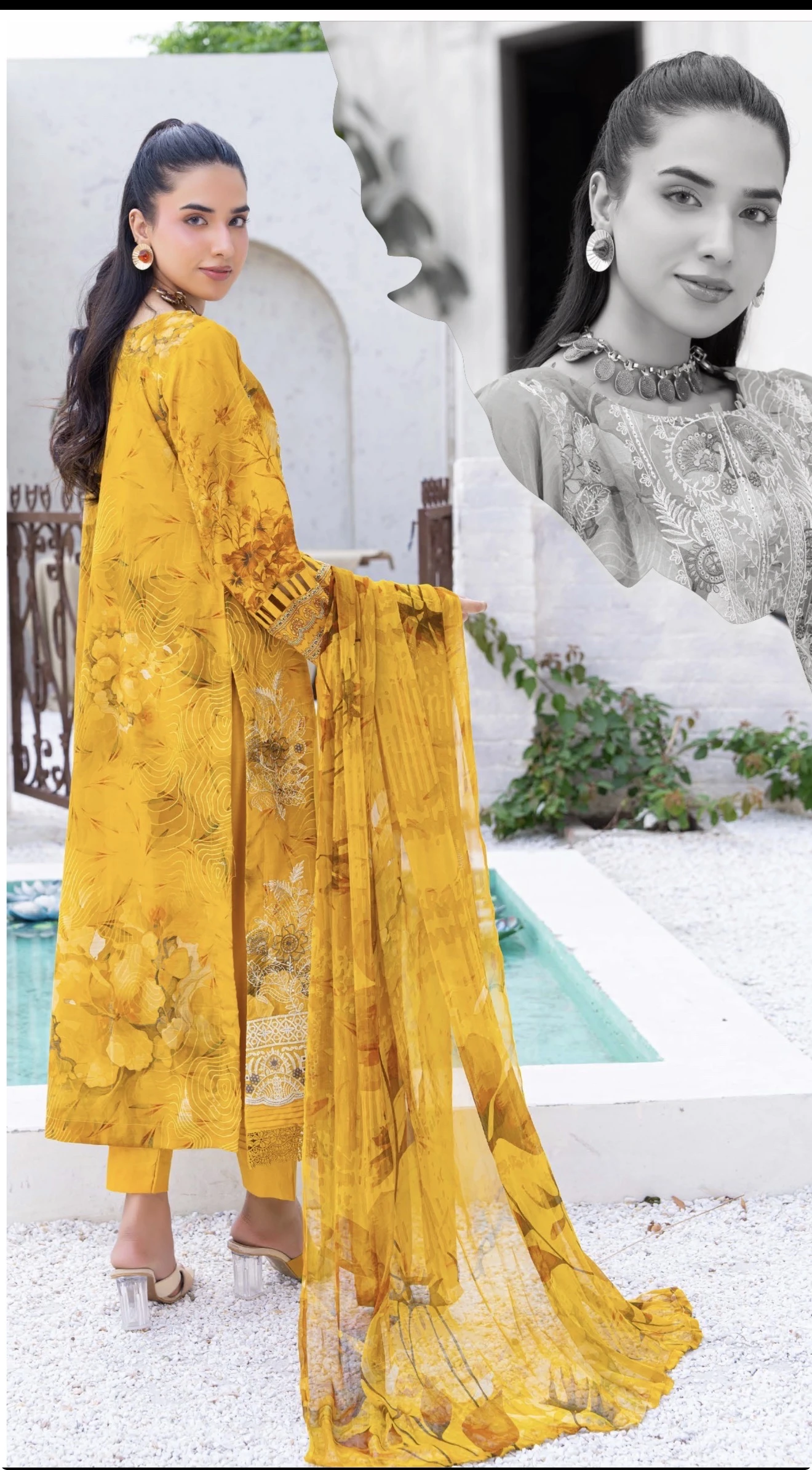 Exclusive Embroidered Digital Print Lawn Slub Shirt with Luxury Crinkle Digital Print Dupatta and Comfort of Plain Trouser