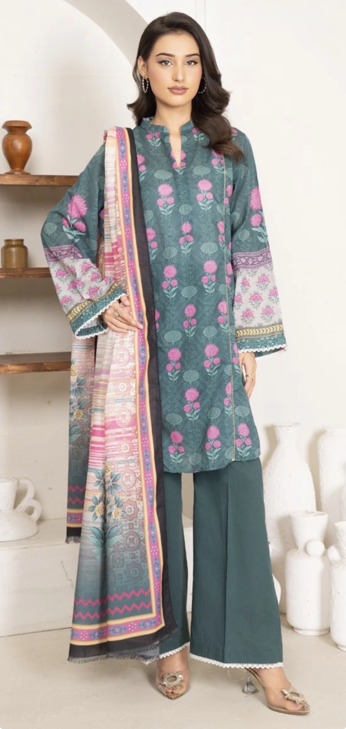 DIGITAL PRINTED VOIL DUPATTA DIGITAL PRINTED LAWN SHIRT DYED CAMBRIC TROUSER 2.5 Mtrs 3 Mtrs 2.5 Mtrs